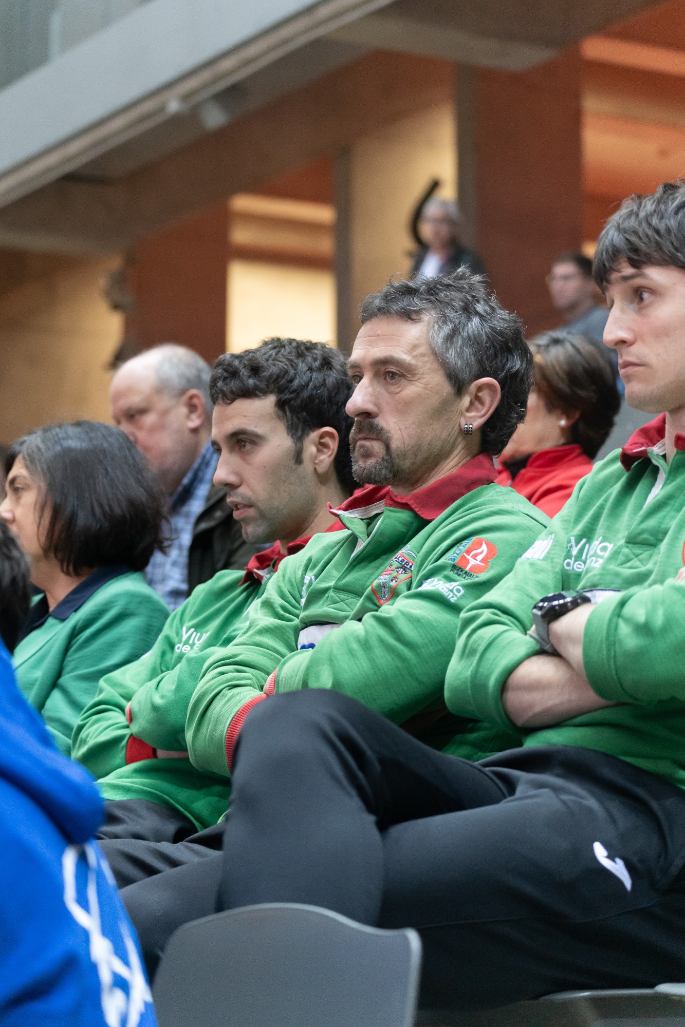 Bizkaia Frontoia ha vuelto a ser el escenario de esta cita anual en la que la presidenta del Patronato de la Fundación y diputada de Euskera, Cultura y Deporte, Leixuri Arrizabalaga, ha agradecido públicamente el esfuerzo y el compromiso de las entidades, empresas y clubes que conforman Bizkaialde.